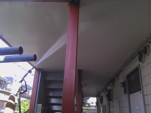 鉄部のサビ止めをして高圧洗浄をいたしました。