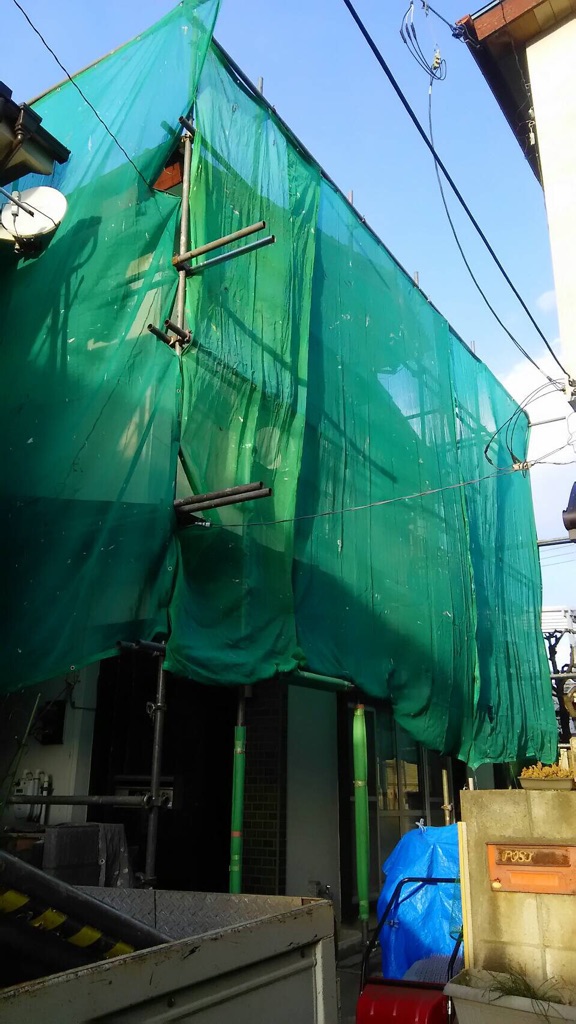 ネットシートの取り付け作業。