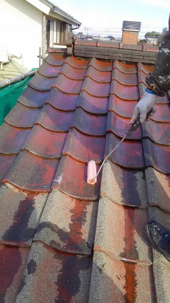 モニュエル瓦のプライマー塗装。