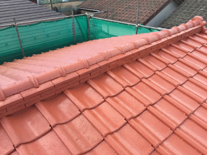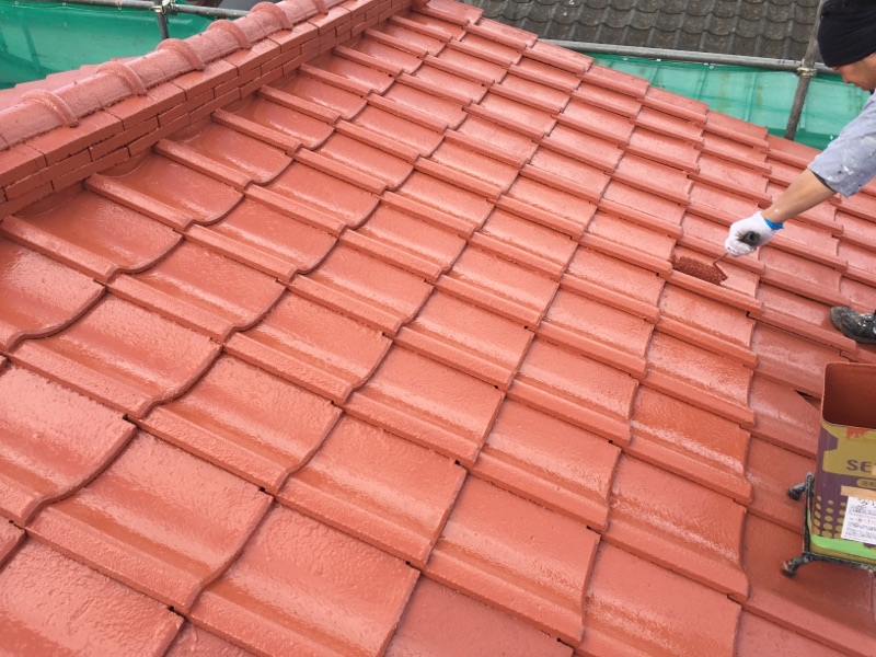 モニュエル瓦 ヤネフレッシュによる上塗り塗装。