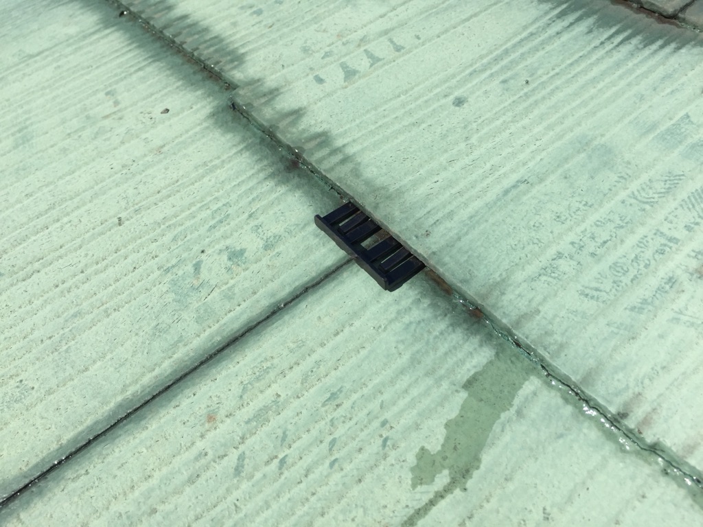 コロニアル屋根にタスペーサー挿入作業。
