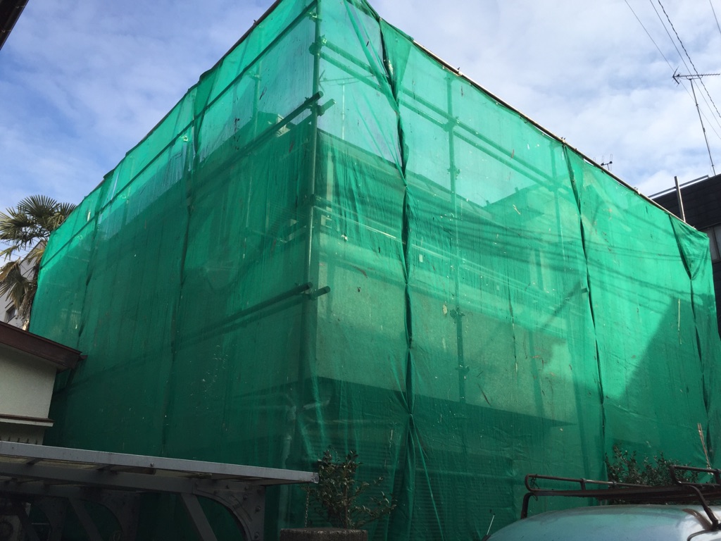 足場の組み立て。