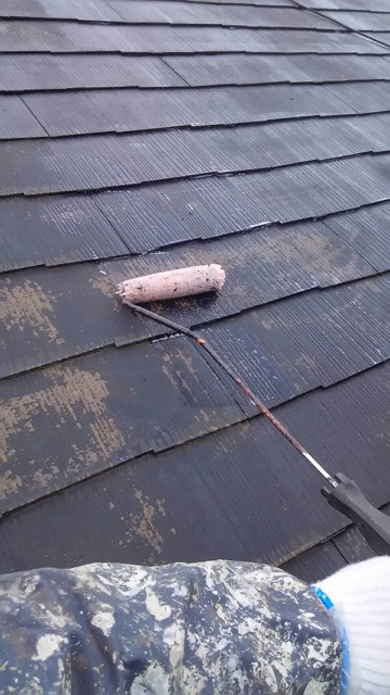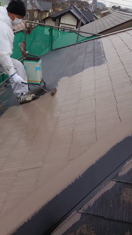 コロニアル屋根はヤネフレッシュ 色番号RC108。中塗り。