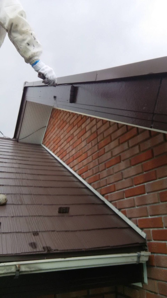 破風板 マイルドシリコン ココナツブラウン色塗装。中塗り及び上塗り塗装。
