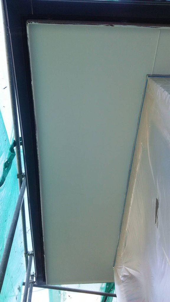 2F周りの雨樋、トタン霧除け 同じくマイルドシリコン 黒色塗装。