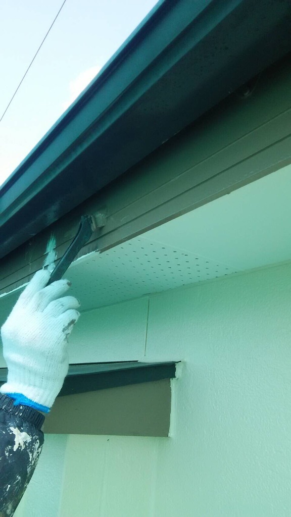 2F周りの破風板塗装 マイルドシリコン 既存茶色合わせ。