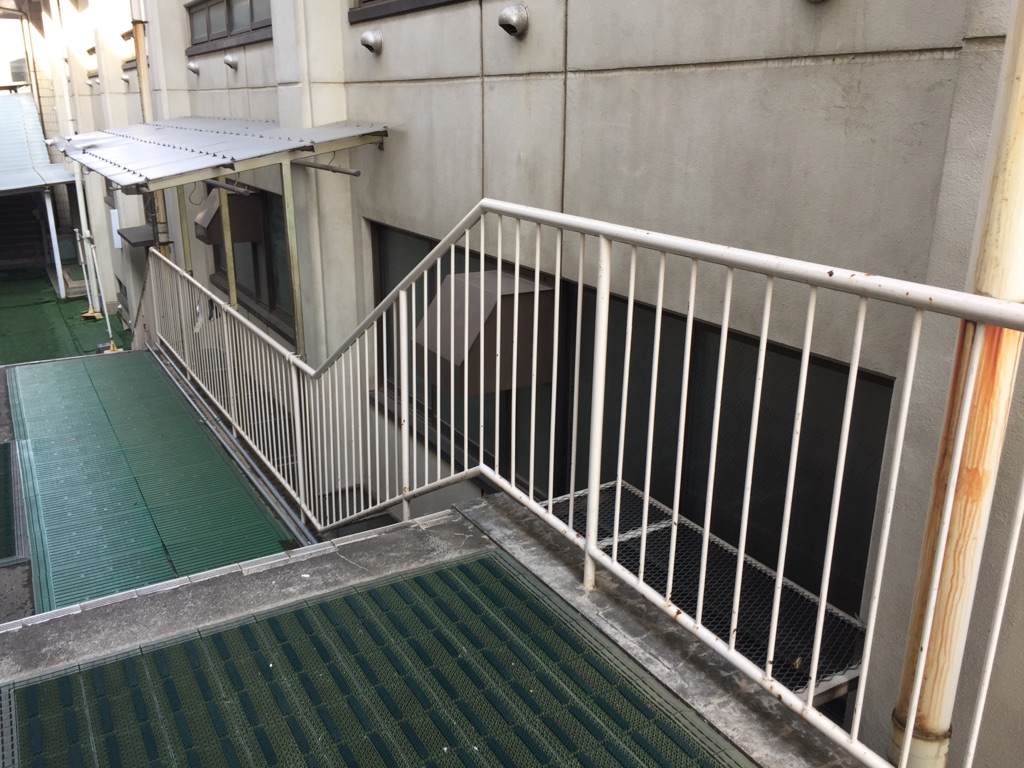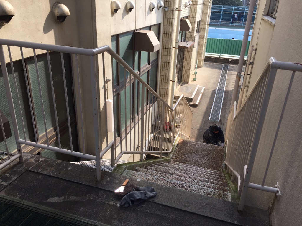 日大第二高校の鉄骨階段及び手摺の塗装です。