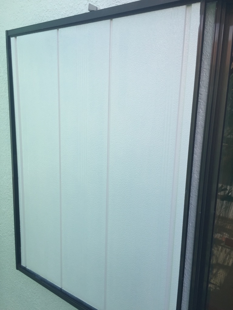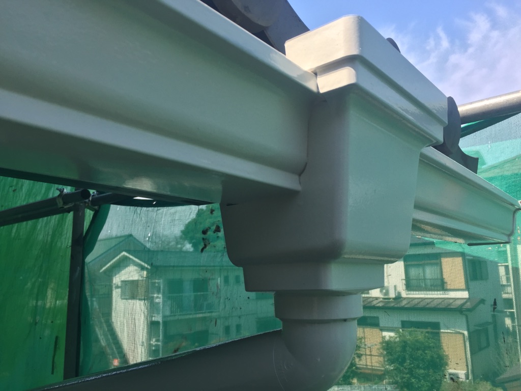 雨樋、鋼製雨戸の塗装 マイルドシリコン アイボリー色。