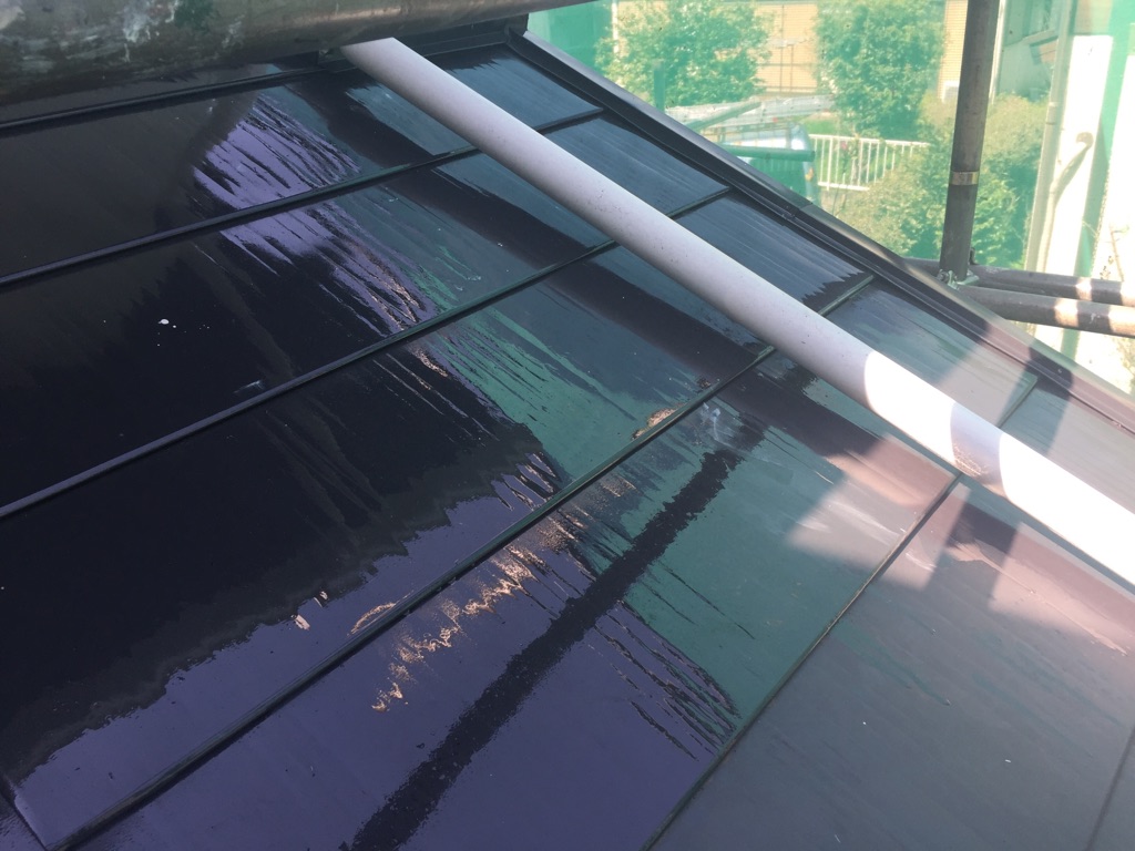 ガルバリウム下屋根のプライマー塗装。
