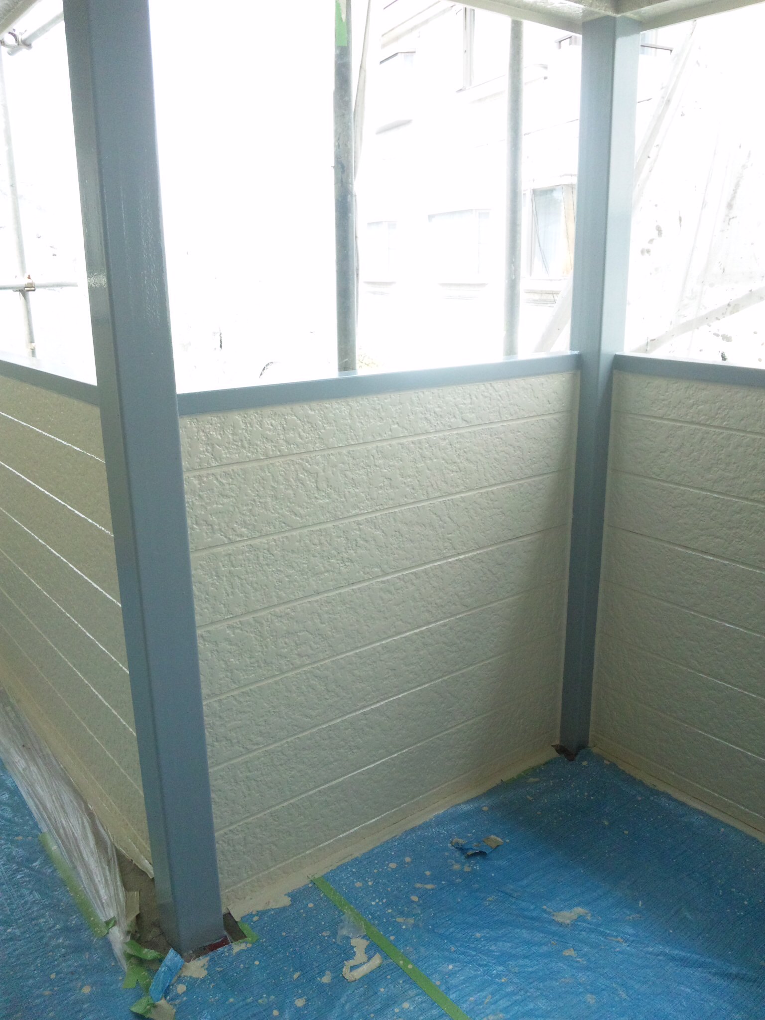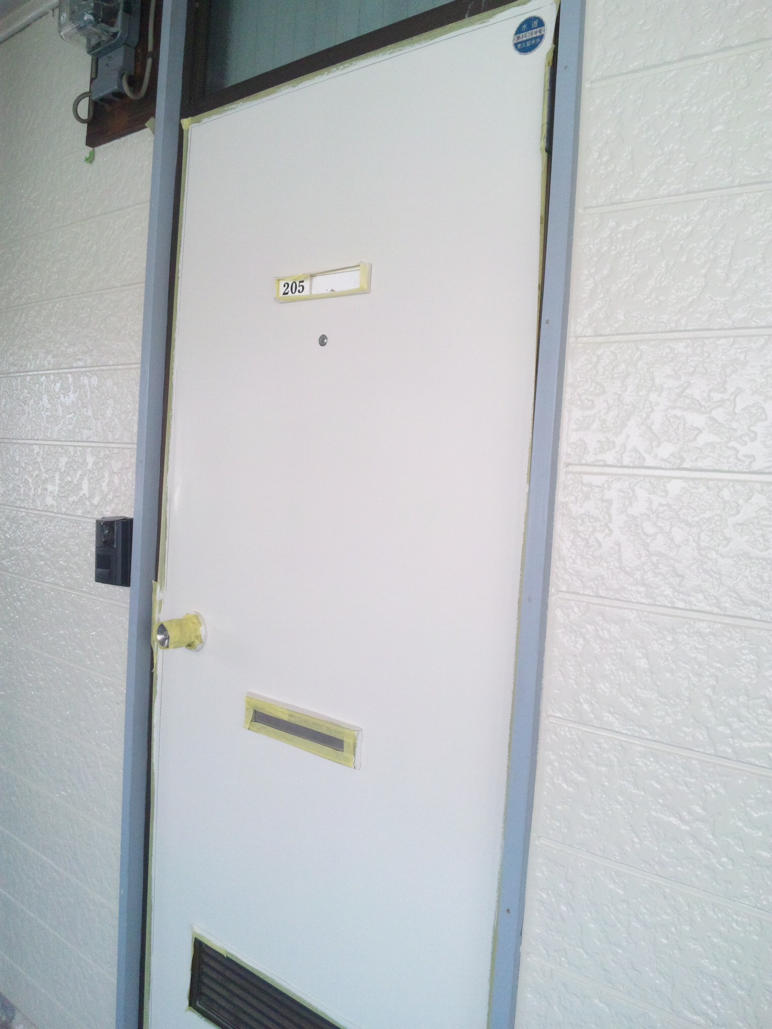 昨日外壁が終わり、今日はその他の細かい部分。破風板、雨樋、トタン霧除け、玄関ドア、鉄骨階段等の塗装を行わせていただきました。