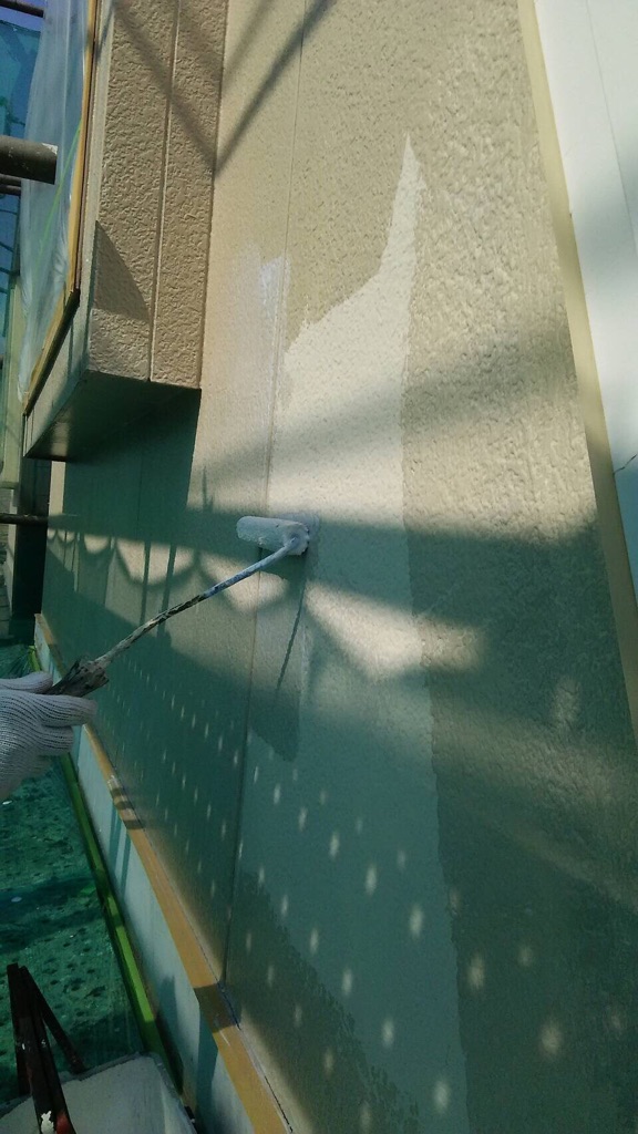 外壁 シーラー塗装。セラミシリコンにより中塗り 色番号SR427