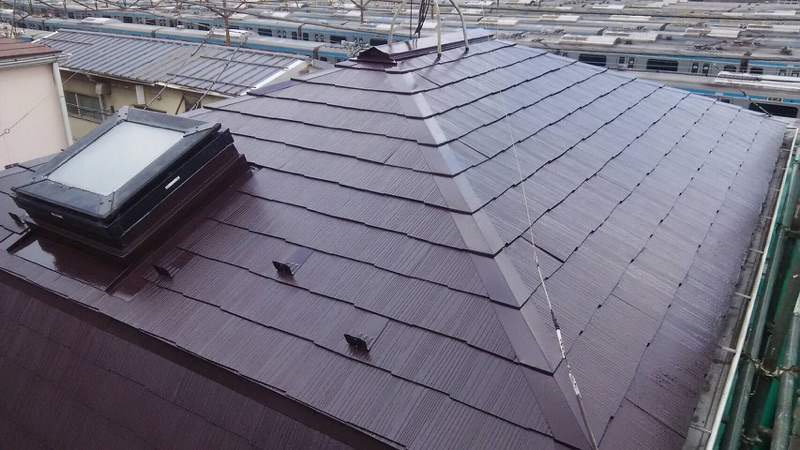 コロニアル屋根 ヤネフレッシュにて中塗り、上塗り塗装 色番号RC103