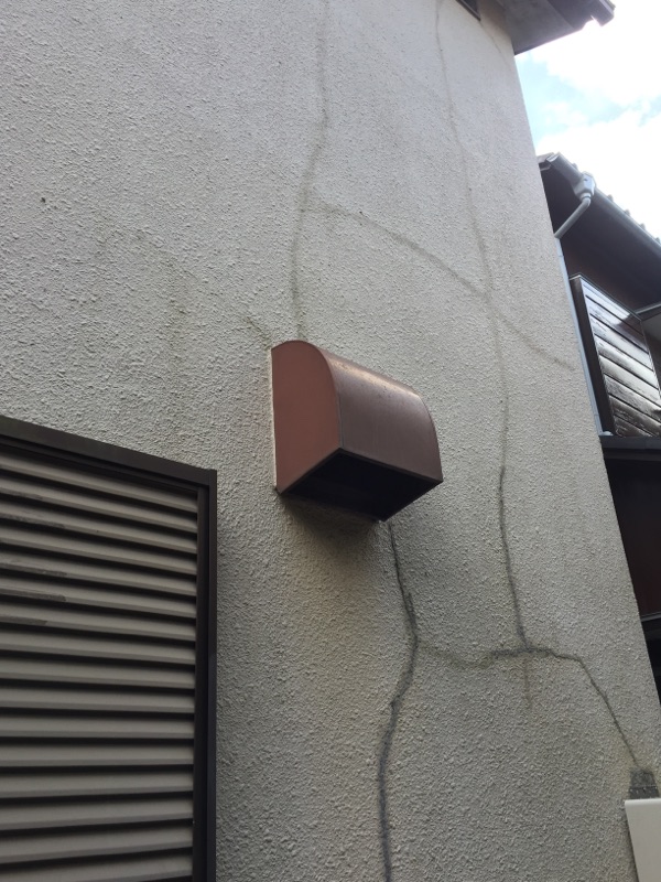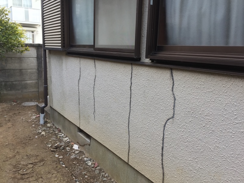 外壁はモルタル壁になっていて、かなり大きなクラックが発生しております。