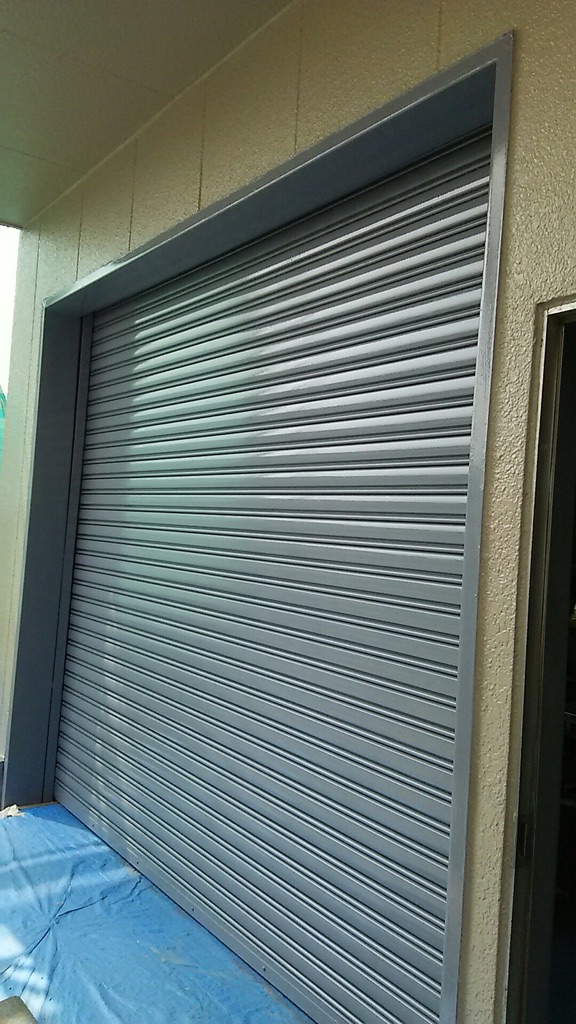 シャッターの塗装。マイルドシリコン グレー色にて。
