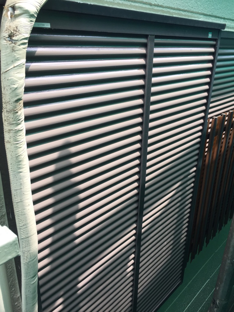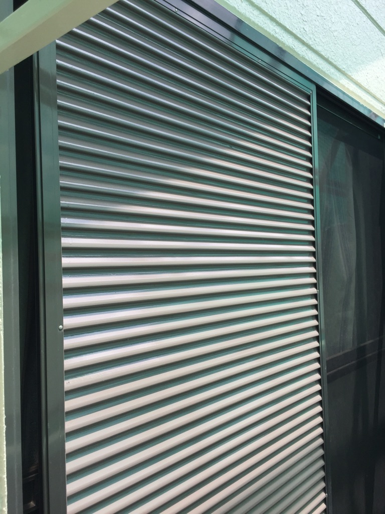 鋼製 雨戸、戸袋 マイルドシリコン 既存色にて塗装。