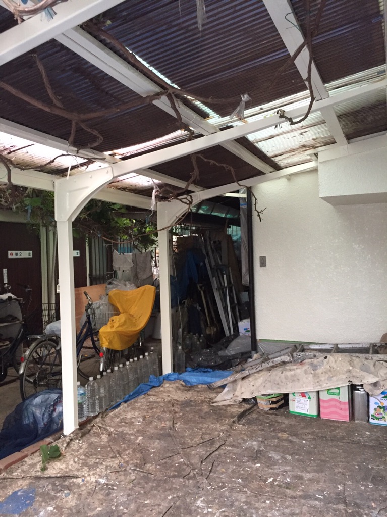 駐車場 パーゴラ塗装。マイルドシリコン アイボリー色。