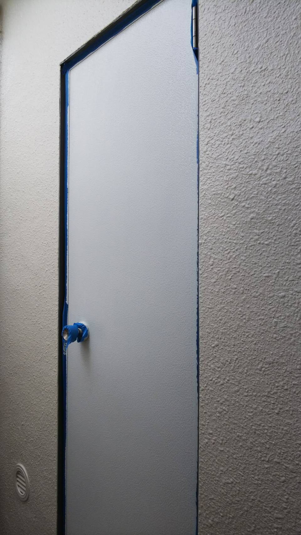 勝手口ドア マイルドシリコン 既存アイボリー色にて塗装。