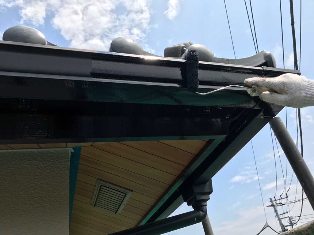 破風板、トタン部の塗装 マイルドシリコン ココナツブラウン色