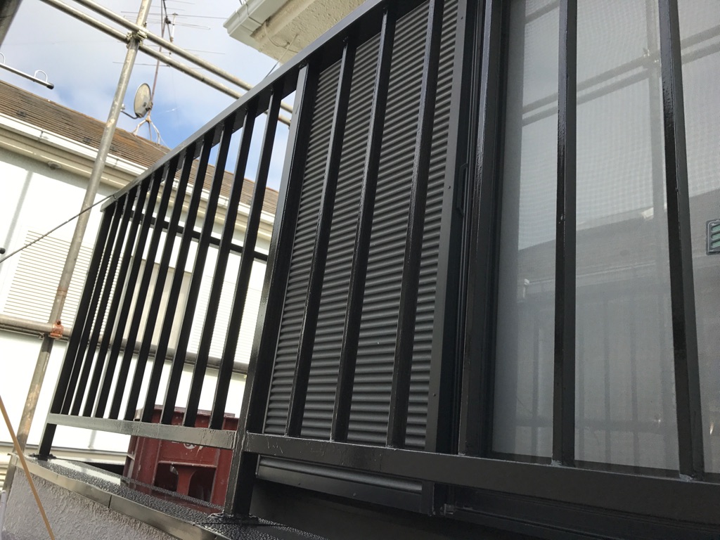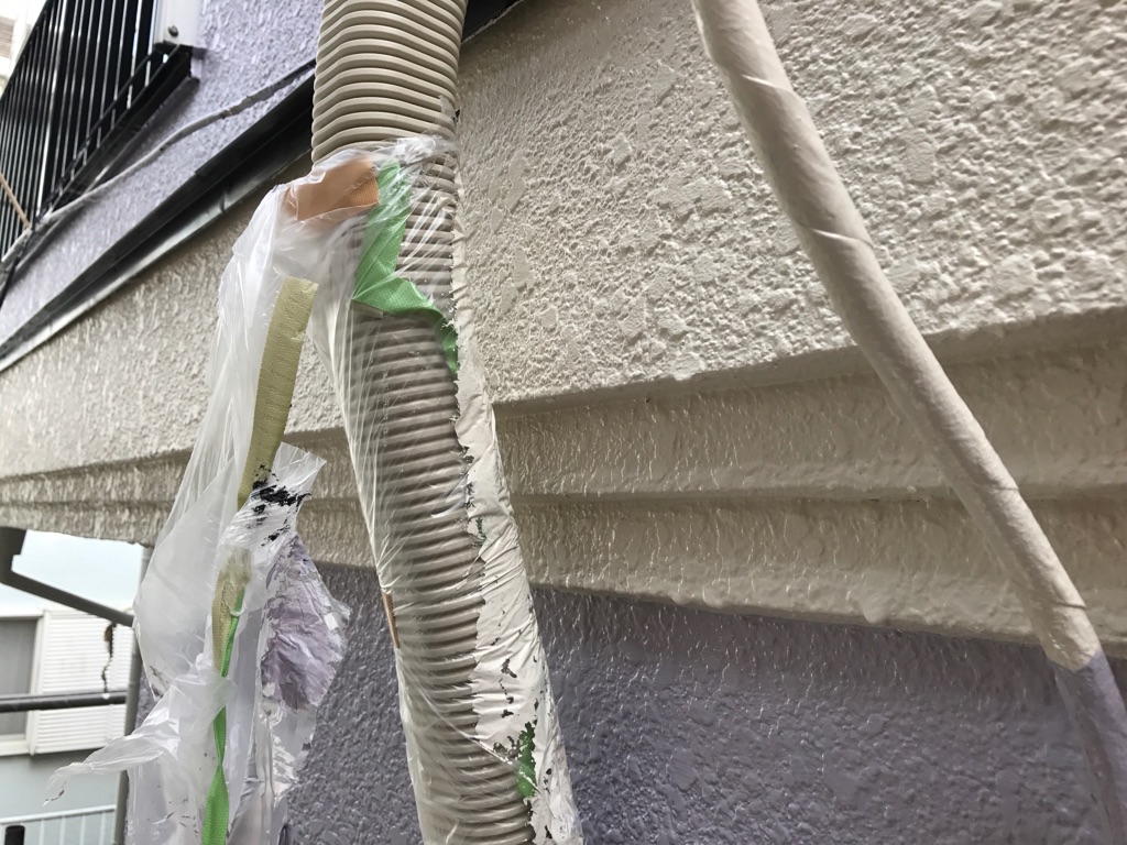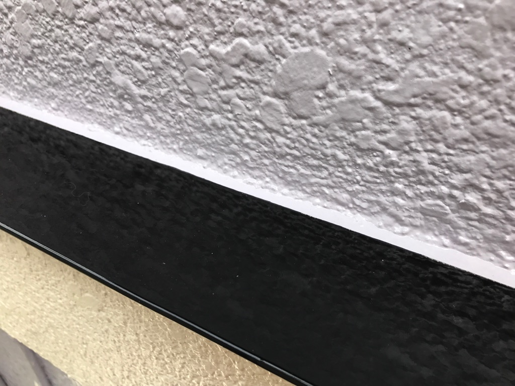 前日の続き、外壁の帯より下部の塗装。中塗り及び上塗り塗装。