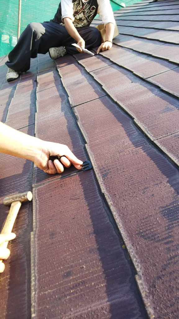 タスペーサー挿入作業。