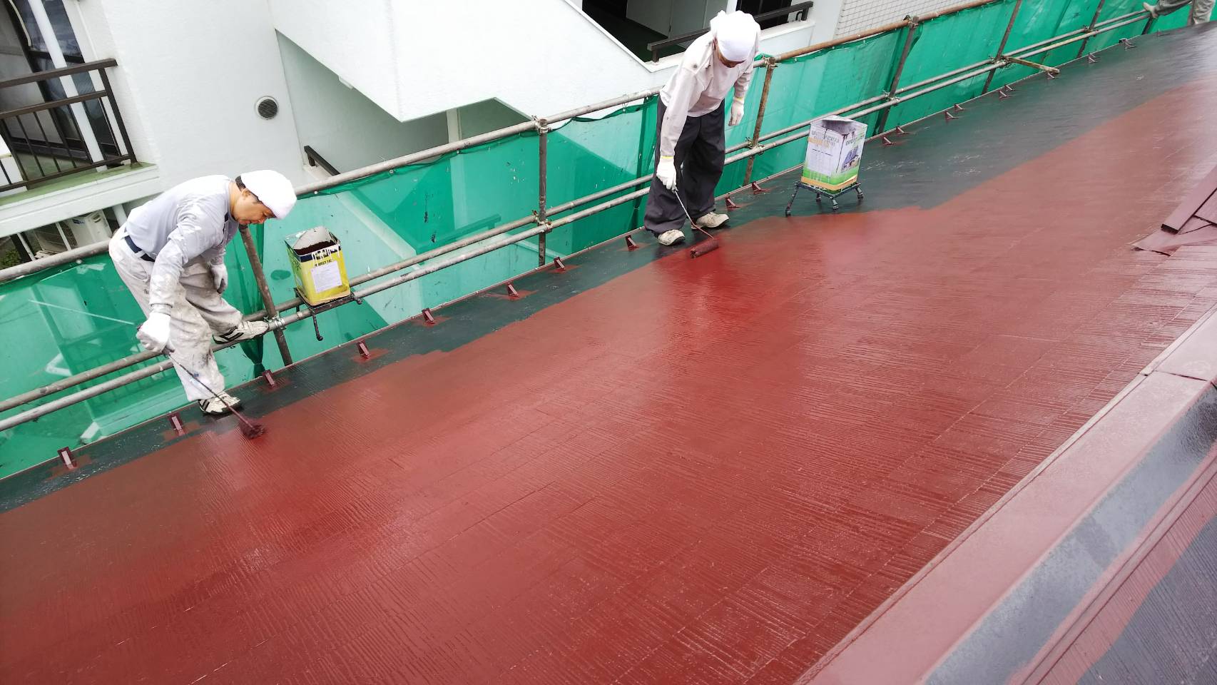 コロニアル屋根のプライマー塗装。