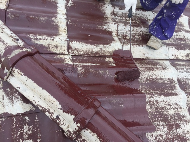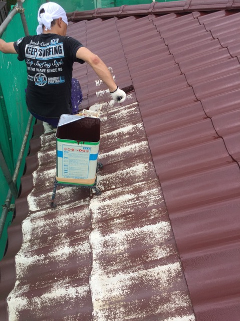 ヤネフレッシュ チョコレート色にて中塗り塗装。