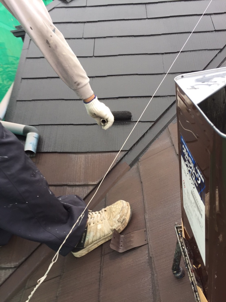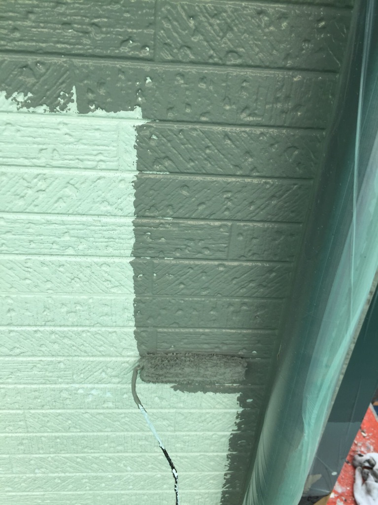 外壁の中塗り及び上塗り塗装。パーフェクトトップ ND375。