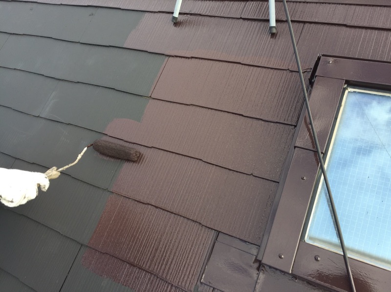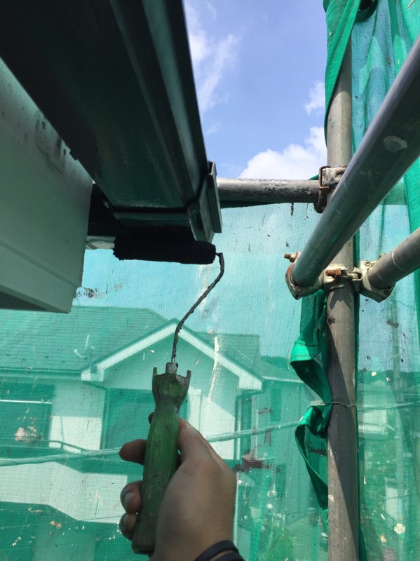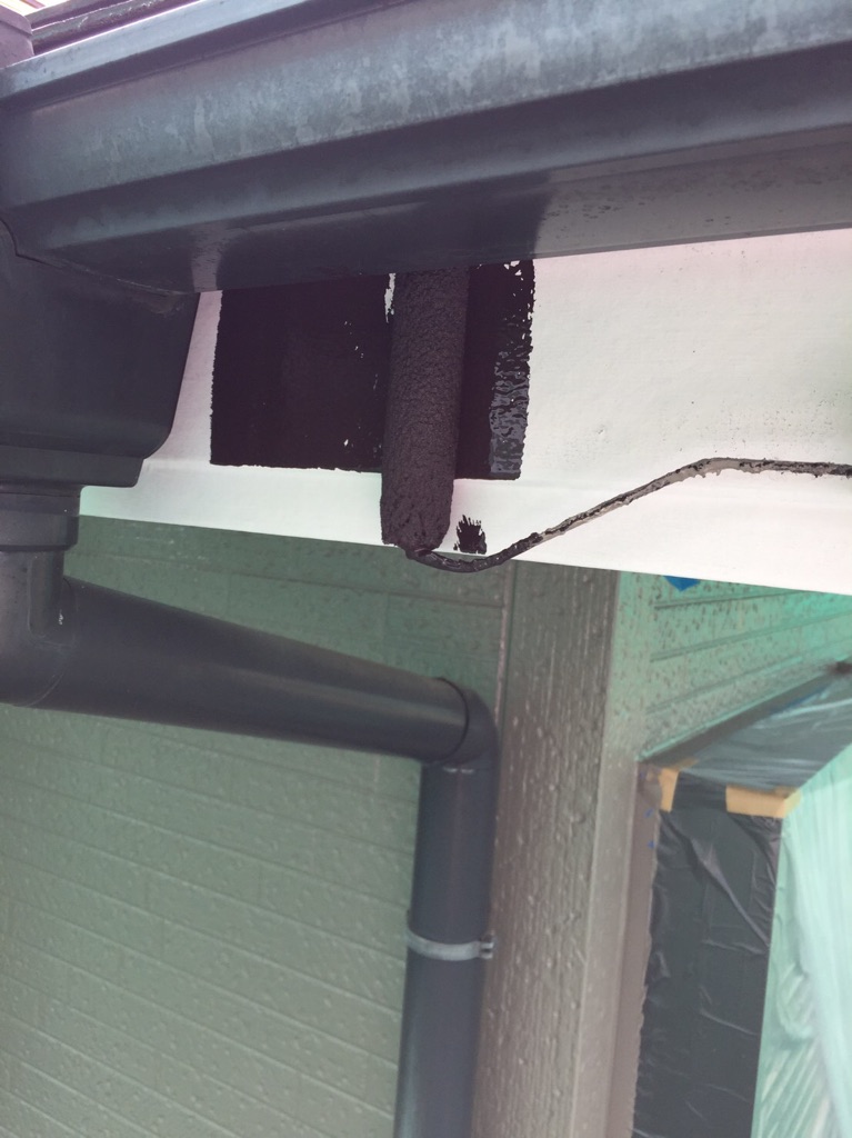 雨樋、破風板 マイルドシリコン ココナツブラウン色にて塗装。
