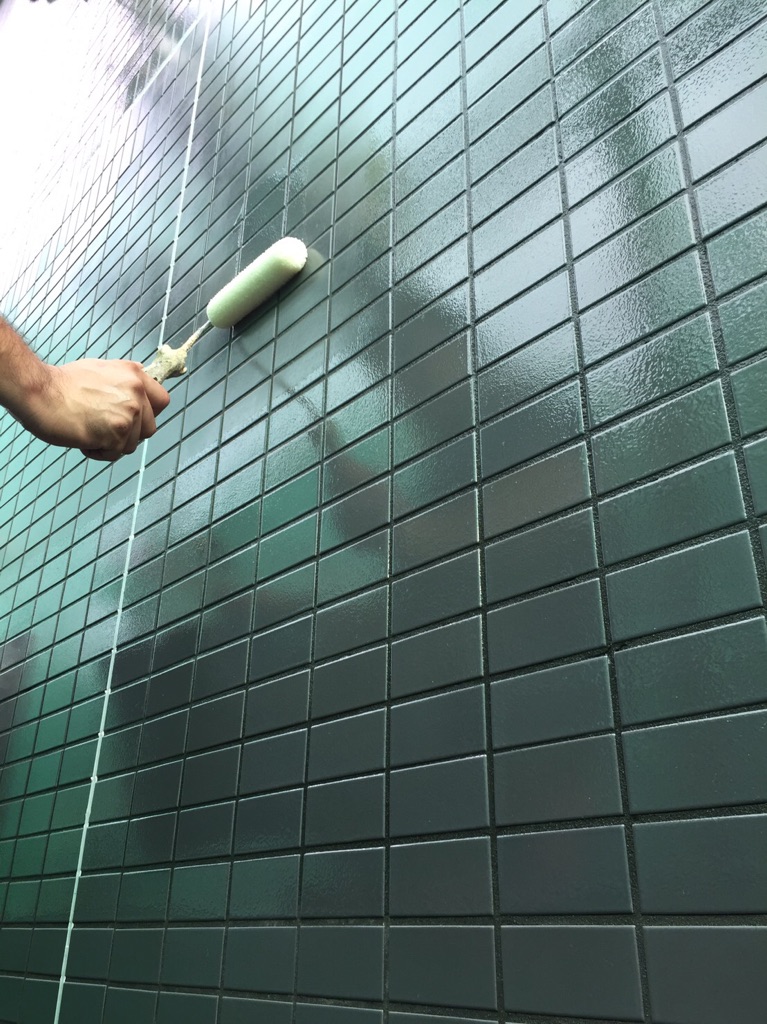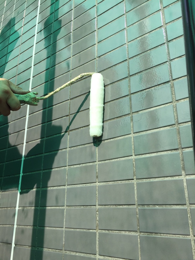 北面と西面のタイルフレッシュ 艶有 下塗り塗装。
