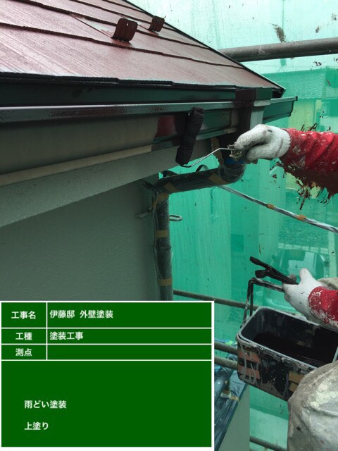 軒樋の塗装。マイルドシリコン ココナツブラウン色。