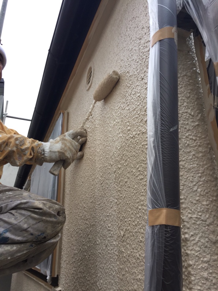 外壁 中塗り及び上塗り塗装 セラミクリーンSR407にて塗装。