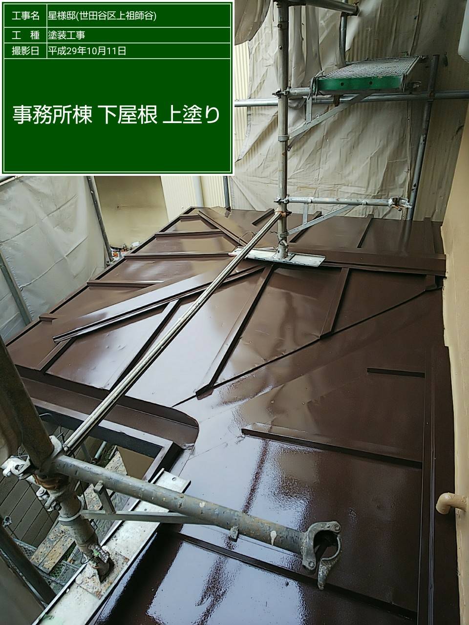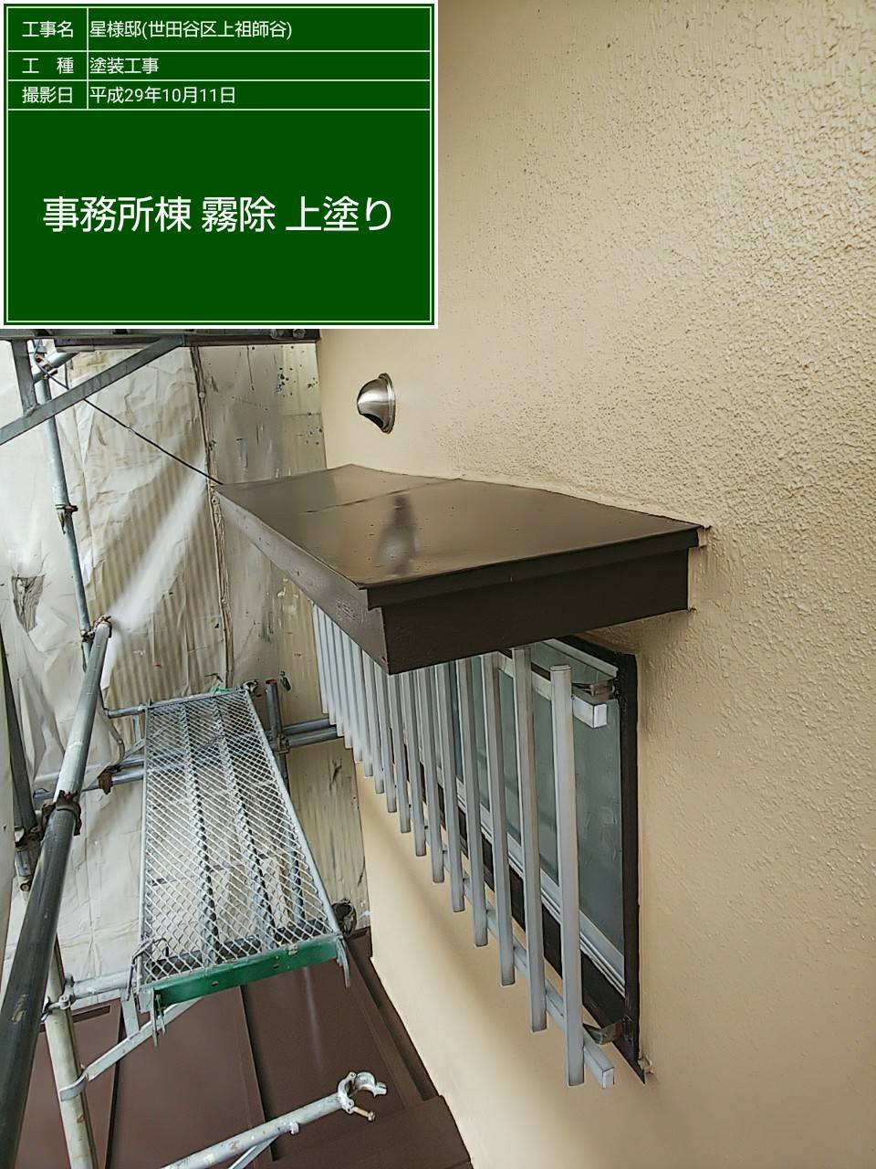 養生を外しながら、破風板、トタン霧除け等の塗装。