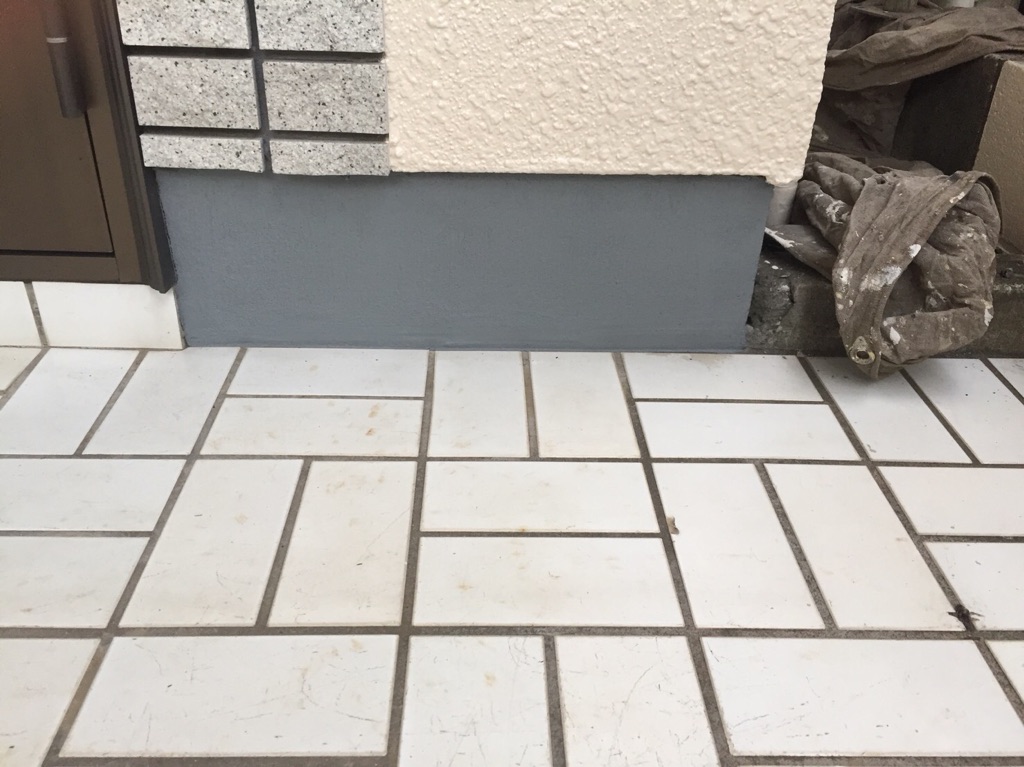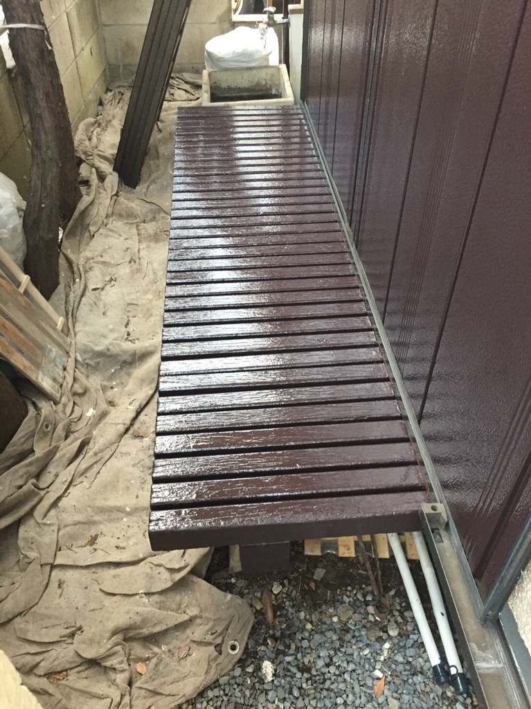 正面基礎部のみ塗装。水性防水トップコート塗装。