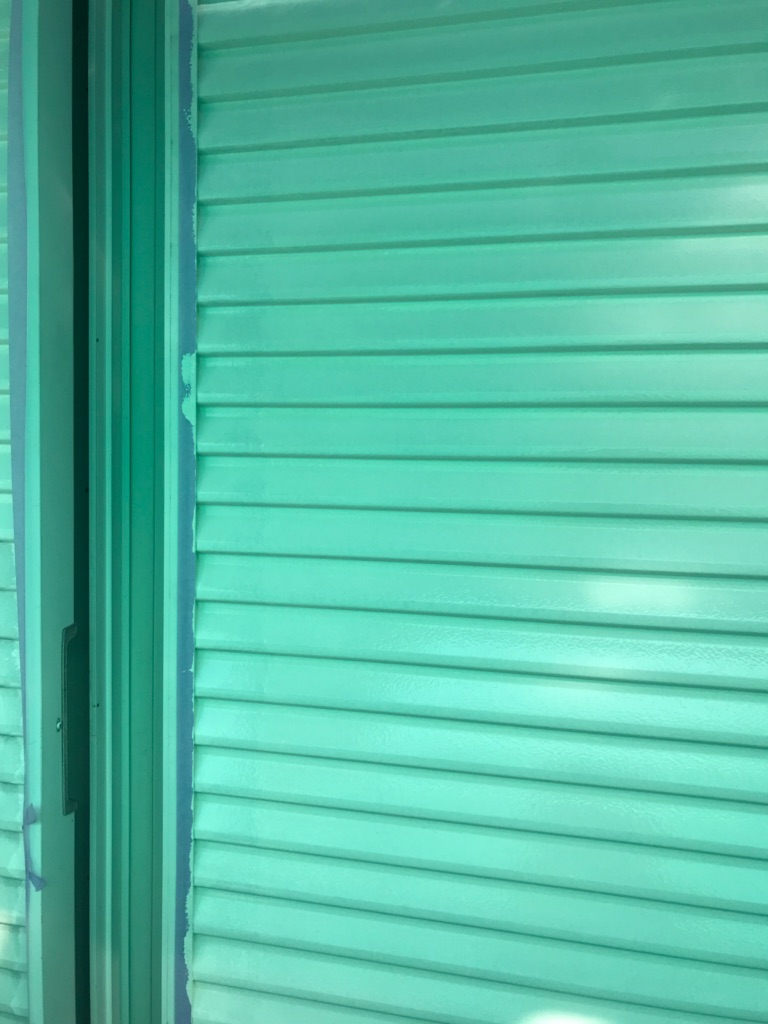トタン部、雨戸戸袋 マイルドシリコン サッシ色にて塗装。