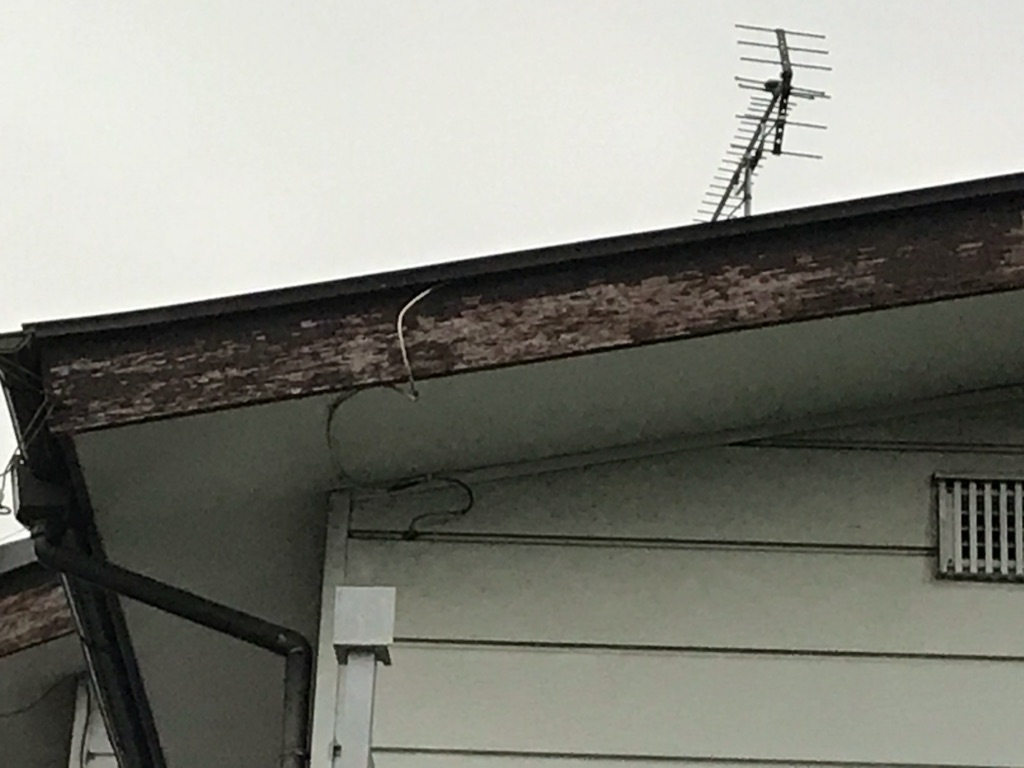 木部は旧塗膜が剥がれ下地が見えている状態です。