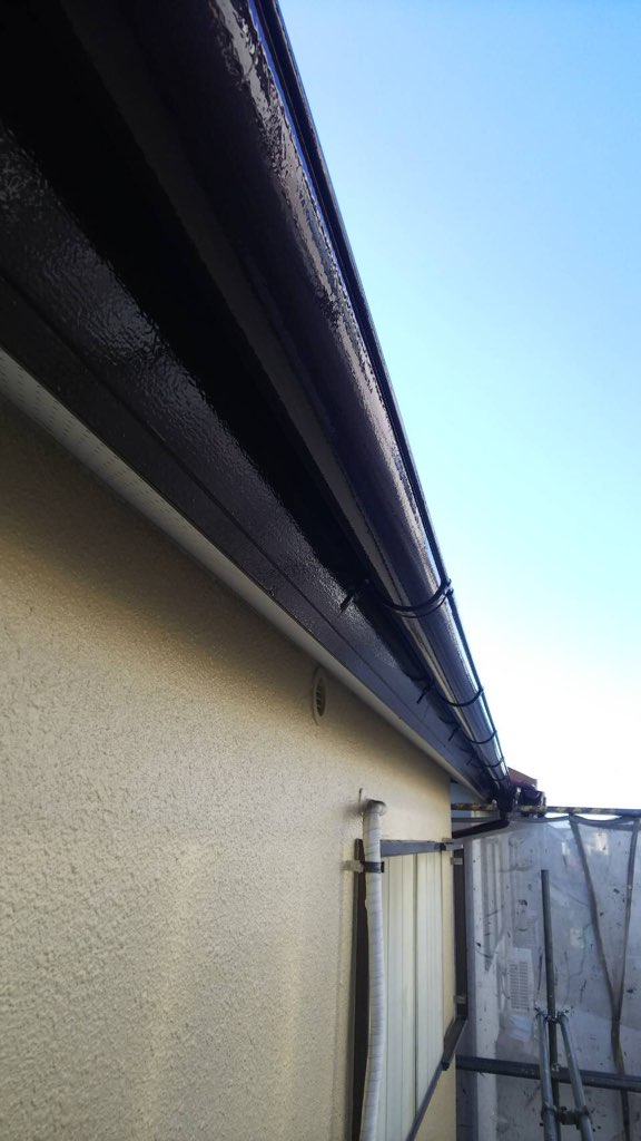外壁 中塗り及び上塗り塗装 セラミクリーン色番号SR403にて塗装。