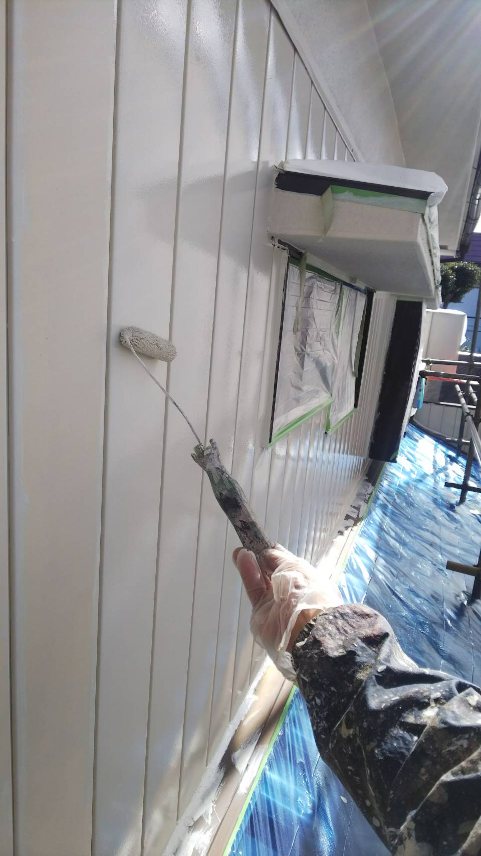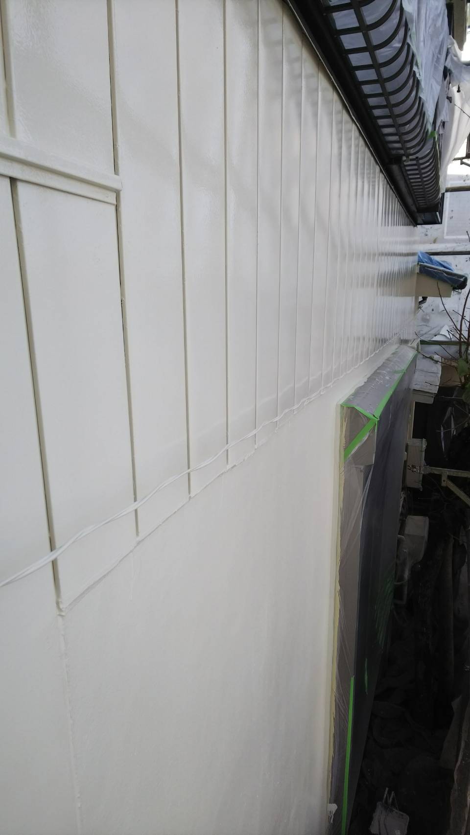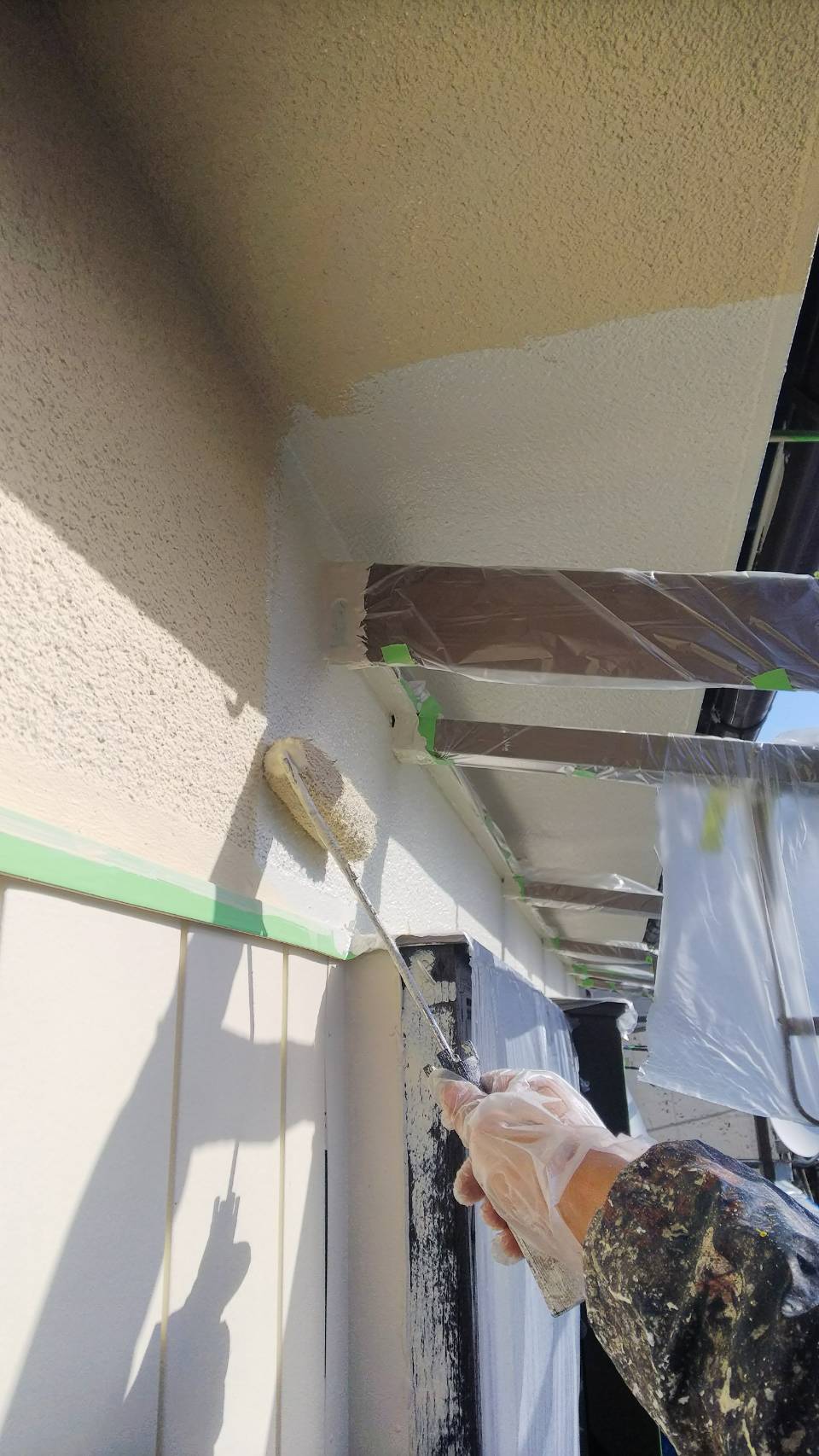 軒天、破風、小壁の中塗り及び上塗り塗装。