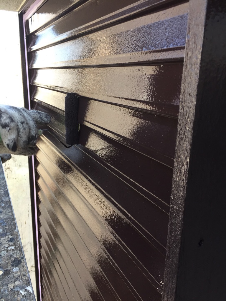 木部、トタン部、戸袋 塗装。マイルドシリコン ココナツブラウン色塗布。