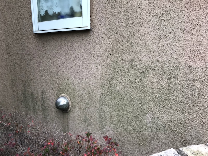 外壁のクラックは見受けられませんが、カビやコケが酷い状態です。