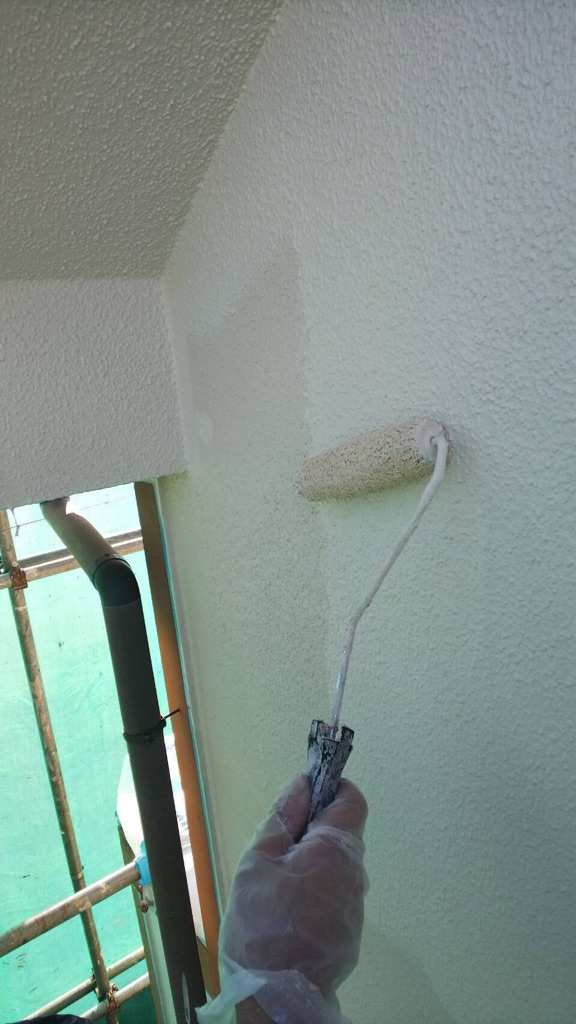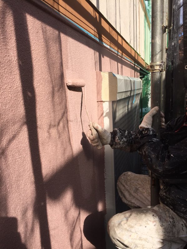 上部外壁 セラミクリーン中塗り及ぶ上塗り塗装 色番号SR410にて塗装。