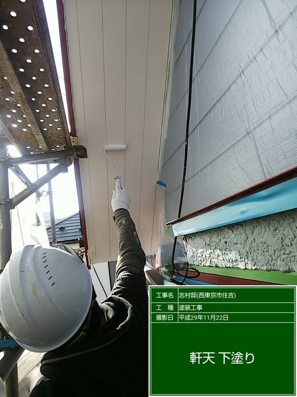 軒天 下塗り上塗り塗装。