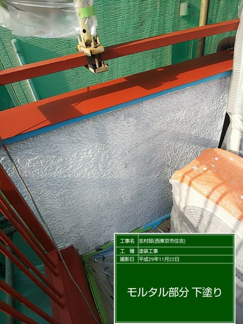 モルタル部分の下塗り フィーラー塗装。及び中塗り塗装。