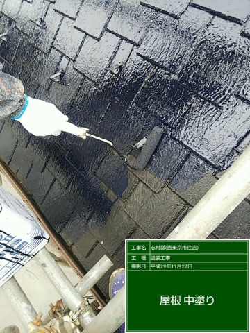 コロニアル屋根 中塗り塗装及び上塗り塗装。