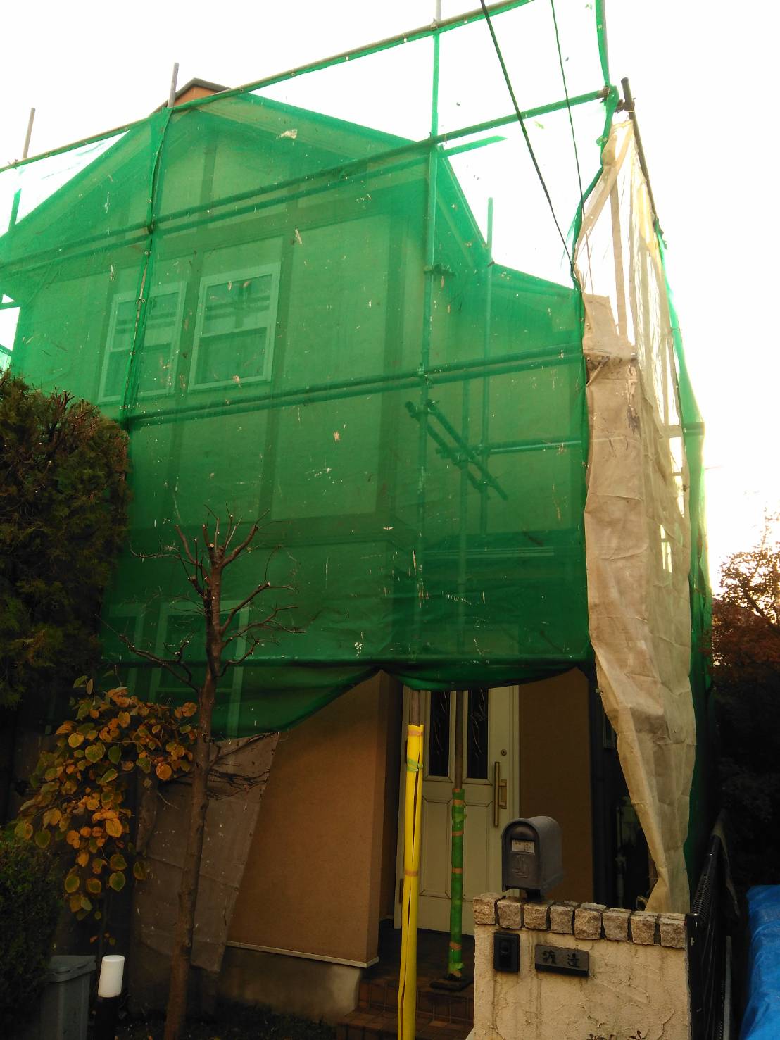 ネットシート張り付け。