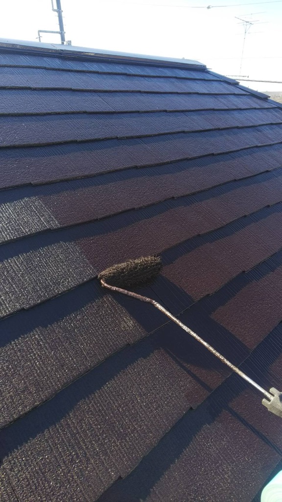 コロニアル屋根の上塗り塗装。ヤネフレッシュにて。