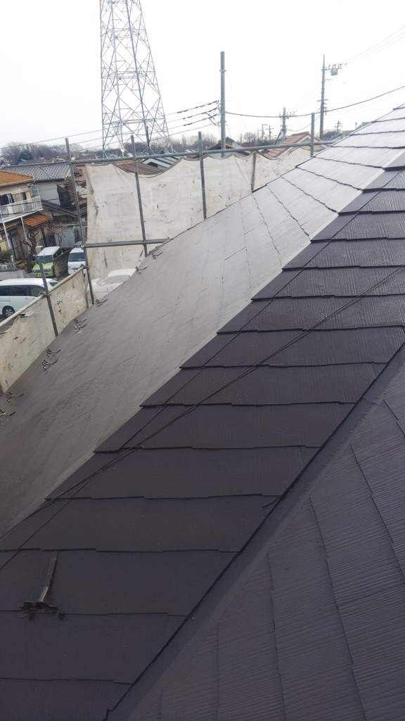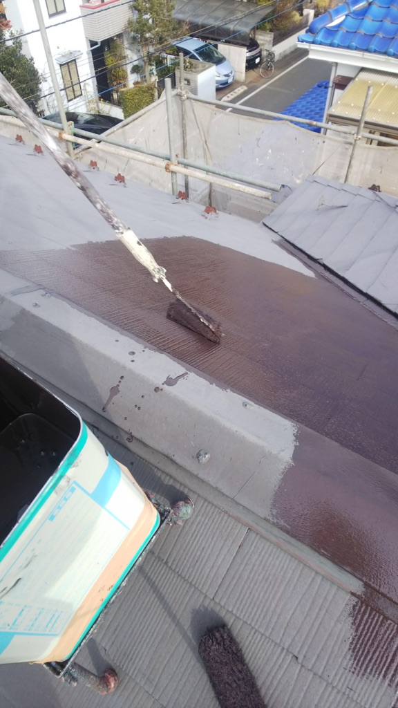 コロニアル屋根 中塗り及び上塗り塗装