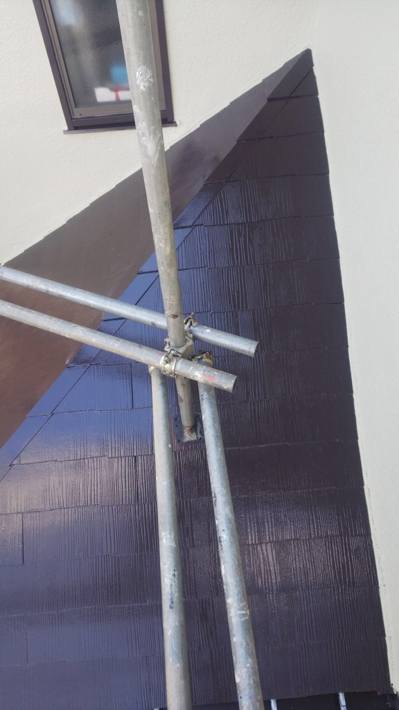 コロニアル下屋根 ヤネフレッシュ ココナツブラウン色塗装。