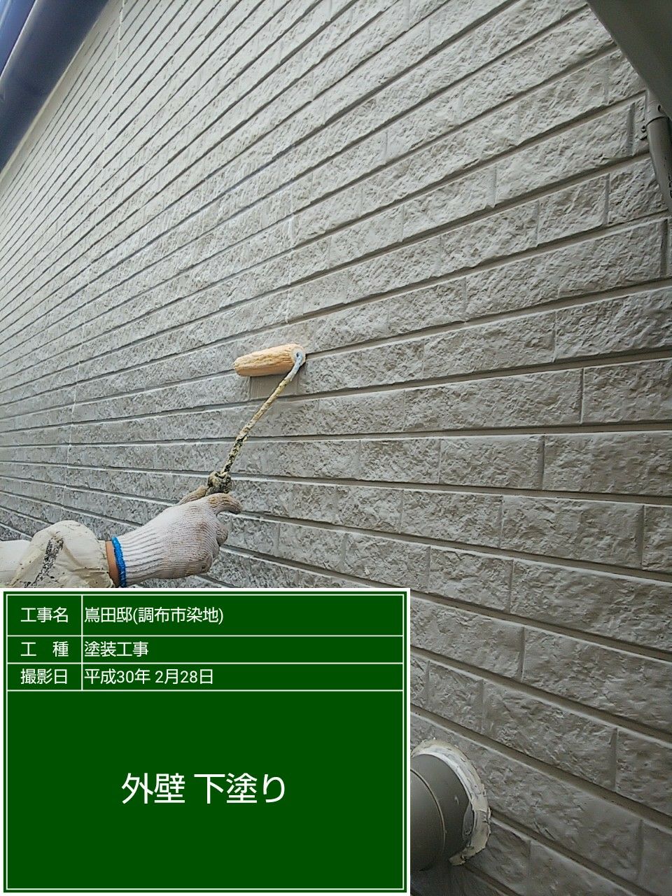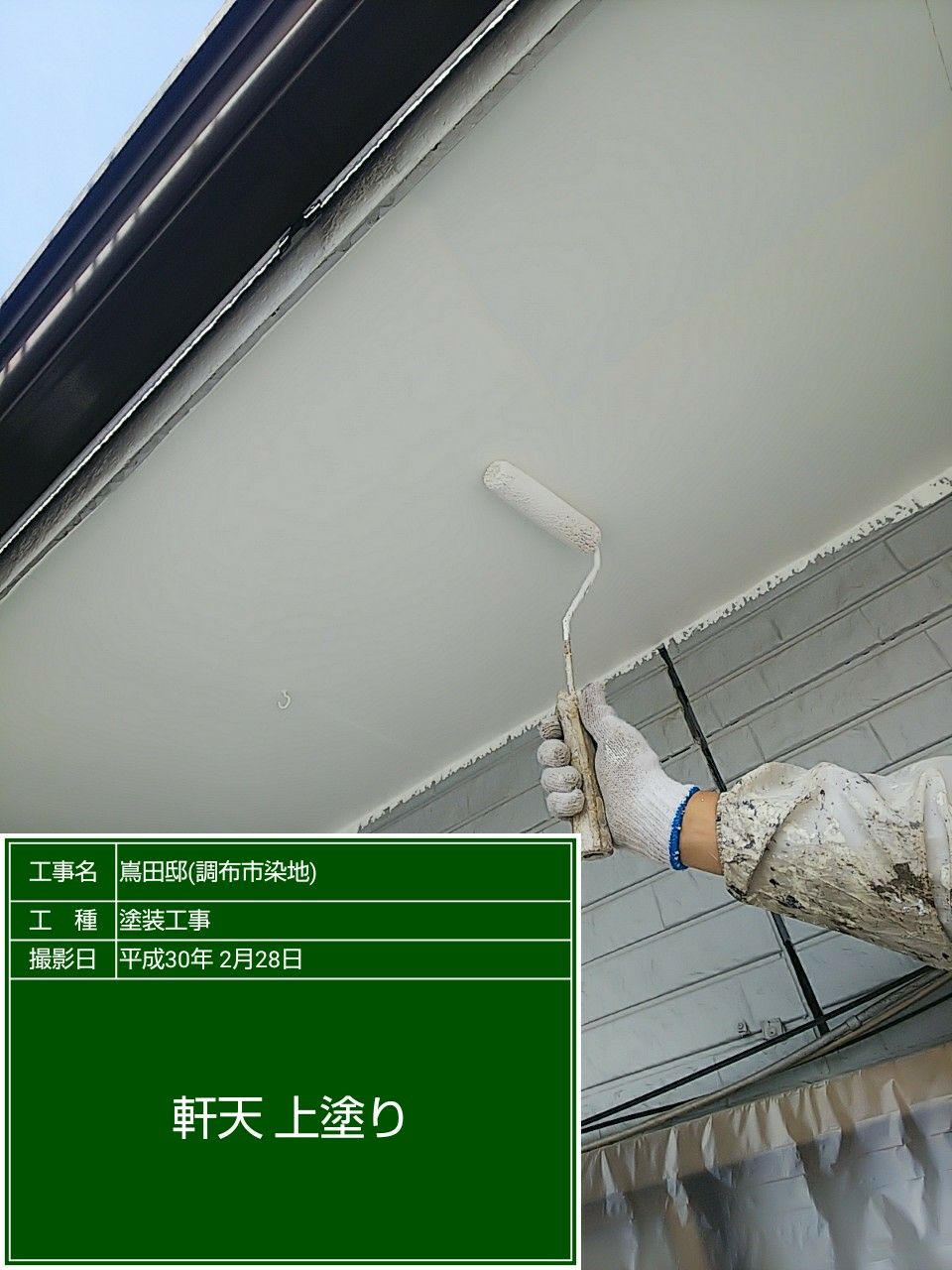 軒天の塗装。ケンエース 色番号ND102にて塗装。