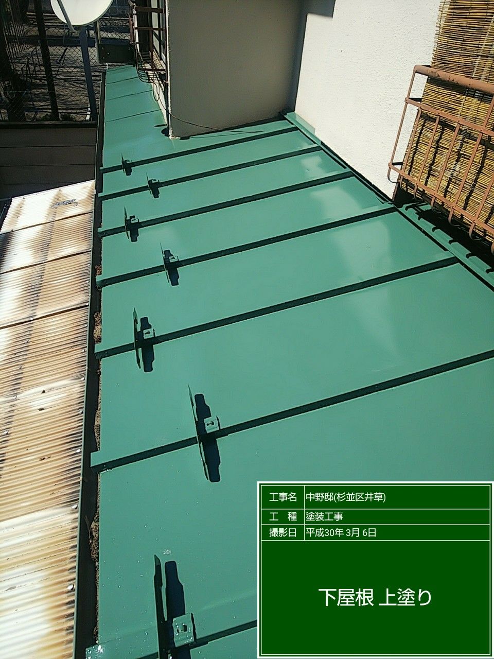 上塗りにファインパーフェクトベスト 色ミラノグリーンにて塗布。