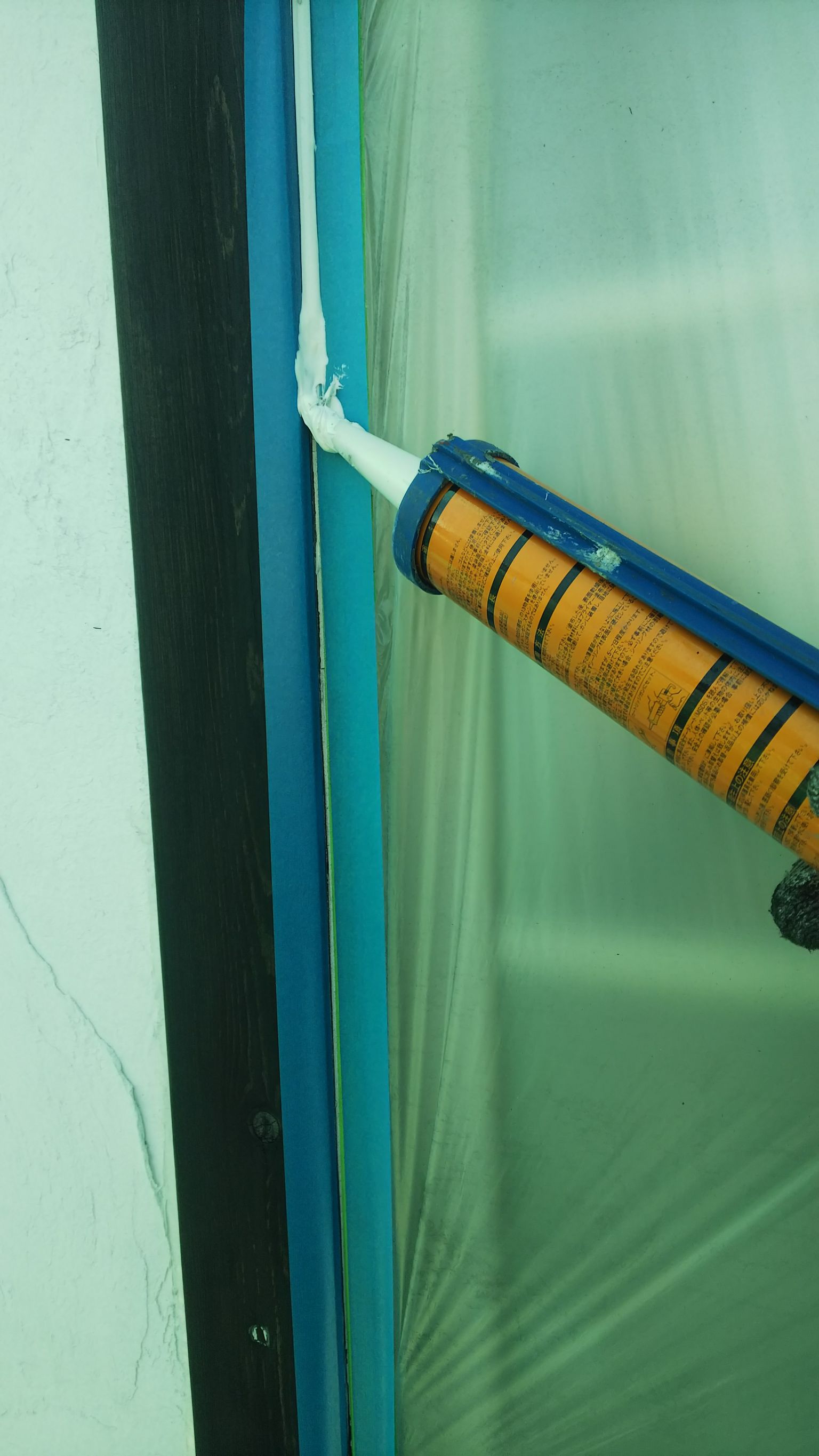 木部と壁の取り合いにシーリング工事。